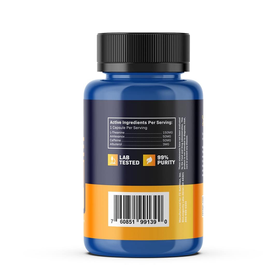 - Amplify mitochondrial energy metabolism via increased fatty acid oxidation (Caffeine, L-Theanine) [2][10], and β₂-adrenergic stimulation of oxidative tissues (Albuterol) [6][7].